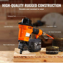 Izcila veiktspēja: VEVOR MCN55 pneimatiskais ruļļļu naglotājs ir savietojams ar stieplē savienotiem ruļļļu tipa naglām, pieļaujot naglu garumu no 25 līdz 57 mm un galvas diametru no Φ5,5 līdz Φ5,7 mm. Ideāli piemērots koka iepakojuma kastu, palešu, mēbeļu, optisko kabeļu spoles, žogu u.c. montāžai. (Диаметр савитоямс каты: мин. 2,1 мм - макс. 2,3 мм)