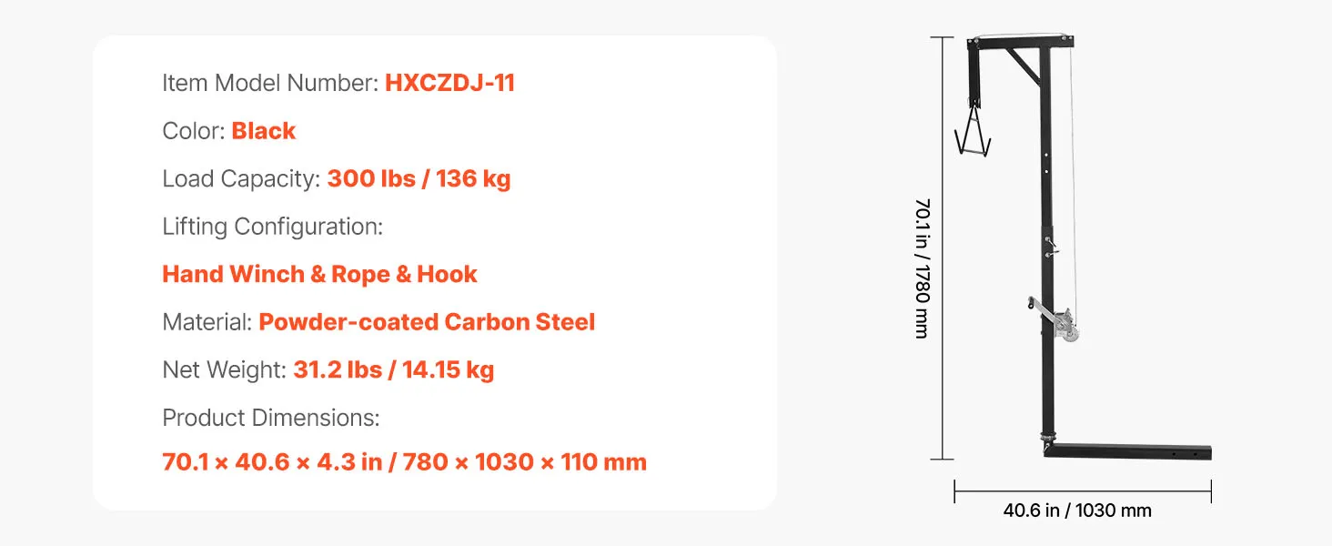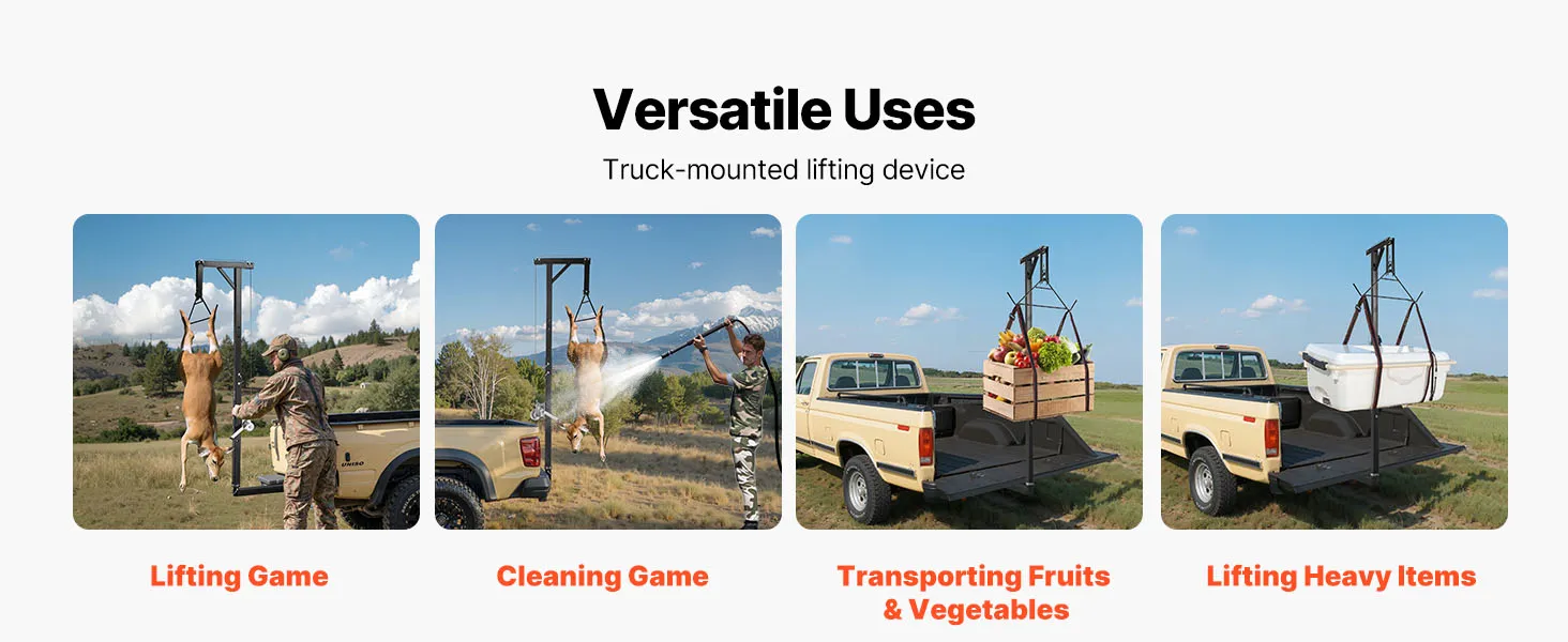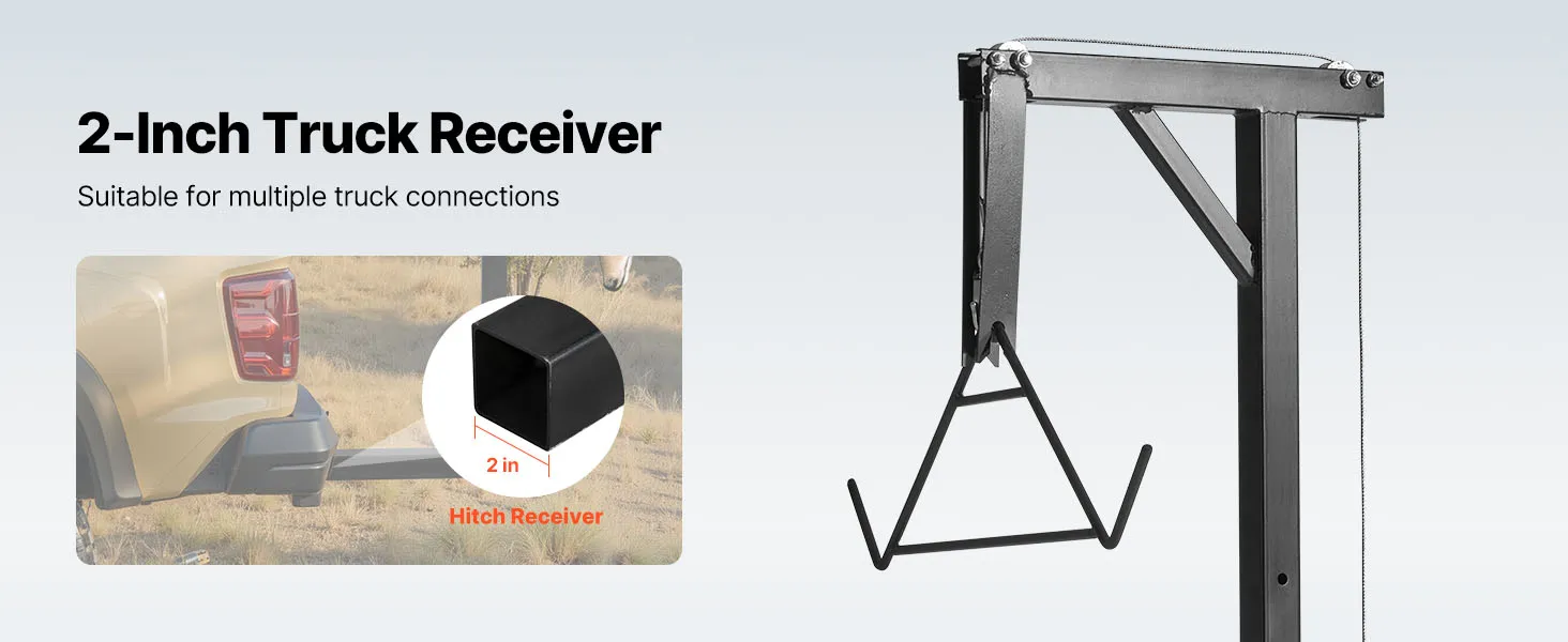 Daudzpusīga izmantošana: Aprīkots ar 2 collu sakabes savienotāju, kas ir saderīgs ar vairumu transportlīdzekļu. Ideāli piemērots medībām, saimniecībām, dzīvnieku pacelšanai, augļu vai dārzeņu pārvadāšanai, kā arī dažādu smagu priekšmetu celšanai brīvā dabā.