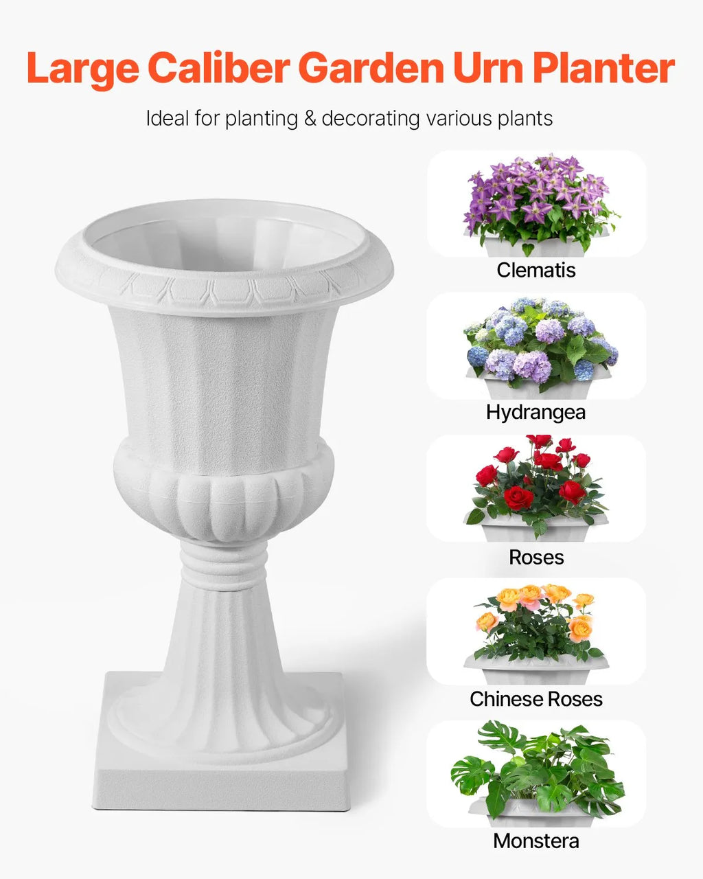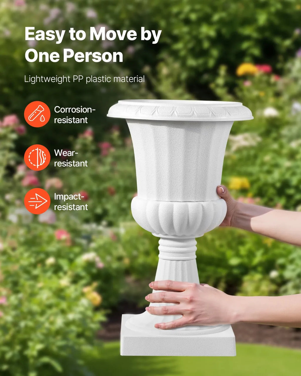 Plastmasas puķu podi, 25 × 42 см, 2 габ., balti, klasiskie ziedu podi iekštelpām un āra dekoram, piemēroti terasei, balkonam, dārzam, mājai, kāzām un pasākumiem