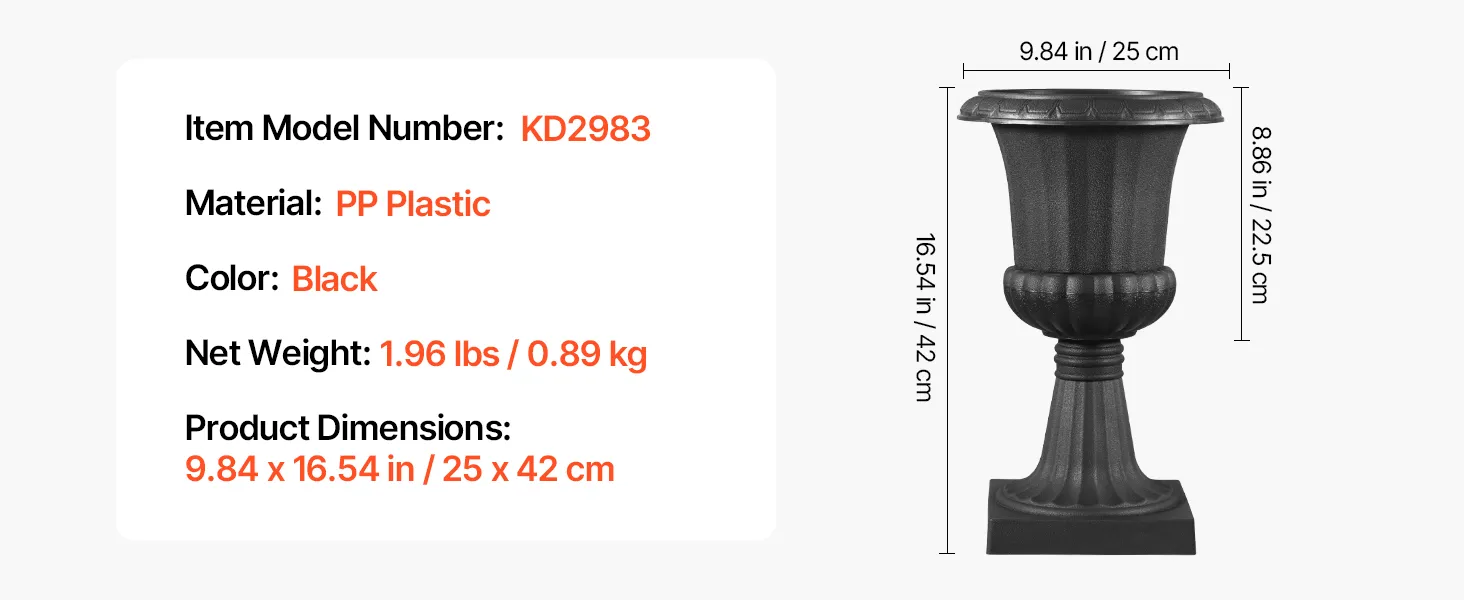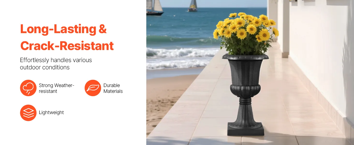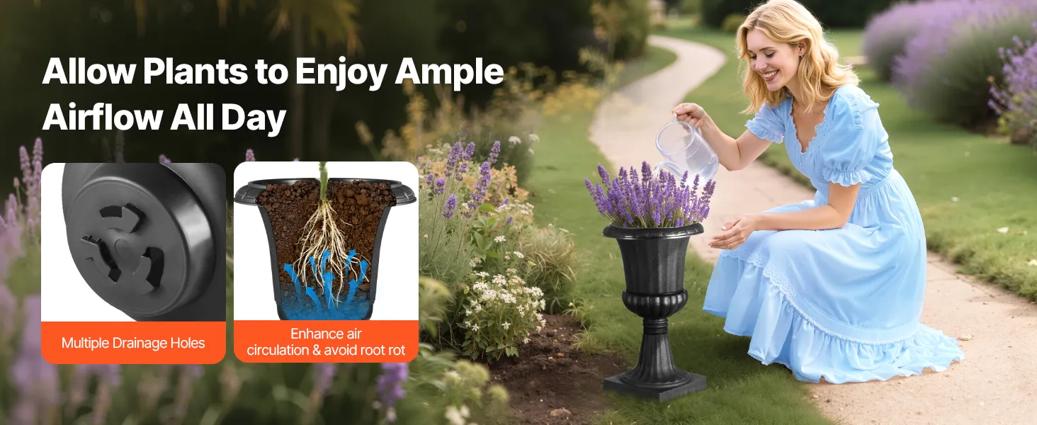 Liela atvere stādīšanai: ar augstumu 42 cm un 25 cm platu atveri šis urnas formas pods ir piemērots klematēm, hortenzijām, rozēm un citiem augiem, nodrošinot tiem ideālu telpu augšanai.