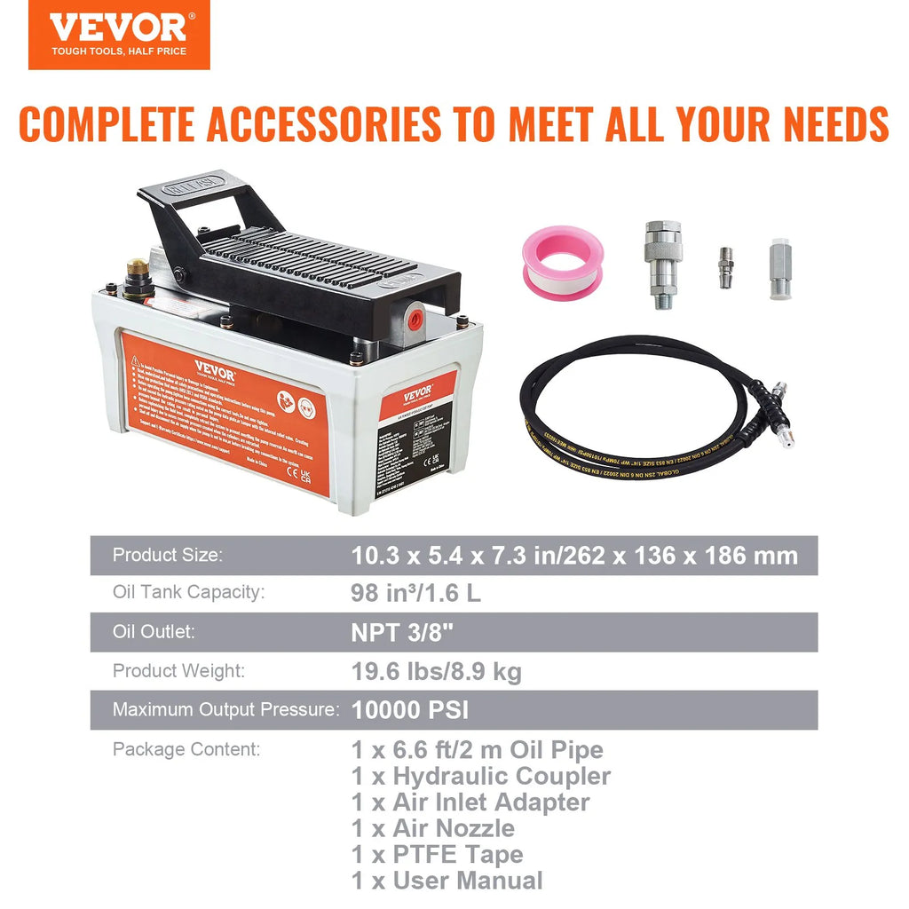 Пневматическая гидравлическая система Šis VEVOR нодрошина спидиену лидз 689 бар, гарантирует узтикаму у яудигу дарбибу дажадос уздевумос - нет автобилю вирсбувес ремонта лидз смагием индустриальным пиелитоюмием. Augstais izplūdes spiediens ļauj viegli veikt sarežģītus darbus, padarot šo sūkni ideāli piemērotu profesionāļiem gan automobiļu, gan rūpniecības nozarēs. Izturīgā konstrukcija nodrošina ilgu kalpošanas laiku un uzticamu ikdienas darbību pat skarbos apstākļos. Tas ir spēcīgs, efektīvs un daudzpusīgs instruments jebkurai darbnīcai.