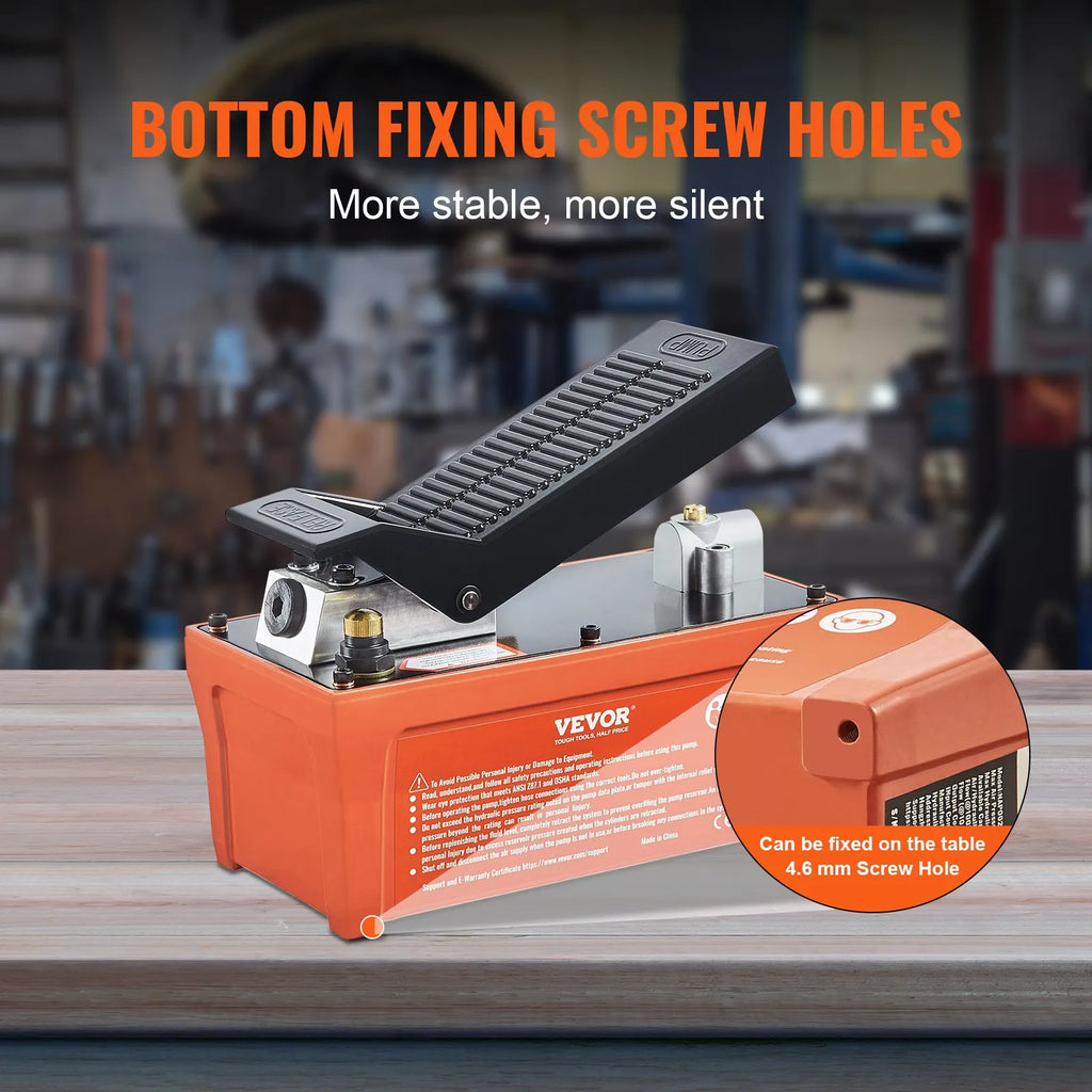 Šī sūkņa pedāļa vadības konstrukcija nodrošina ērtu lietošanu - pietiek ar vieglu spiedienu uz pedāli, lai izveidotu spiedienu. Tas prasa mazāk fiziskas piepūles nekā tradicionālie rokas sūkņi. Sūknis ir gatavs lietošanai, jo tas jau ir pildīts ar hidraulisko eļļļu. Tas darbojas ar augstu efektivitāti un ātri uzkrāj spiedienu. Iekšējais drošības vārsts aizsargā hidrauliskās sastāvdaļas, nodrošinot vienmērīgu darbību. Sūknis ir piemērots darbam ar dažādiem cilindriem un presēm, kas darbojas līdz 689,5 bāriem, palīdzot strādāt ātrāk un efektīvāk.