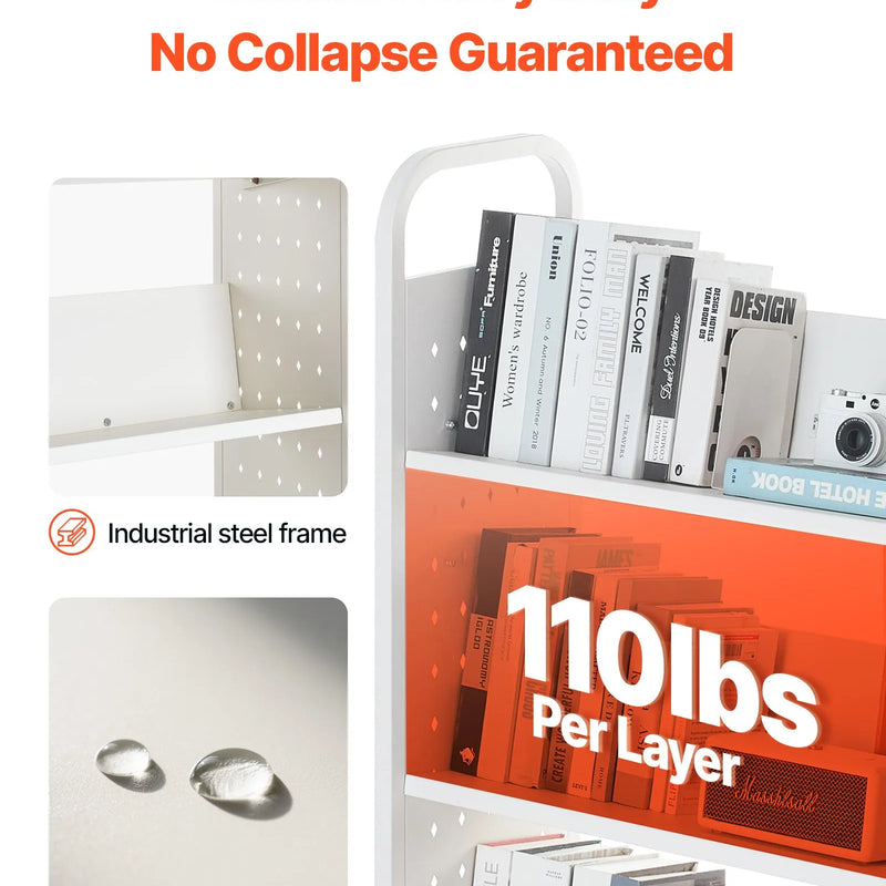 Stabila nestspēja: izgatavoti no augstas stiprības oglekļa tērauda, katrs līmenis iztur līdz 50 kg, ar kopējo kravnesību 150 kg. Pretkorozijas pārklājums nodrošina izturību, padarot ratiņus piemērotus smagām grāmatām vai aprīkojumam