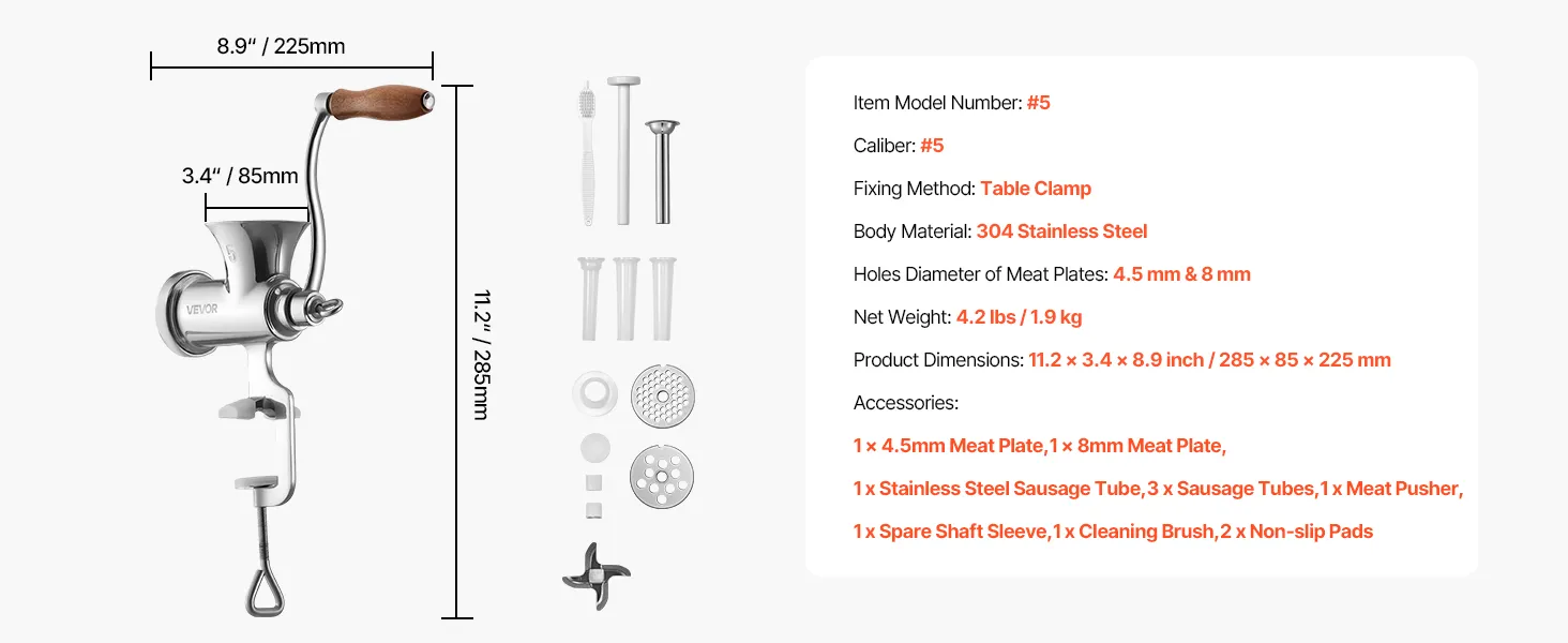Stabila roku darbība: Aprīkota ar tērauda stiprinājumu galdam un neslīdošiem paliktņiem, šī rokas gaļas mašīna stingri turas vietā lietošanas laikā, novēršot slīdēšanu. Стипринажума атвэрума диапазоны (10-45 мм) нодрошина дрошу у стабилизатора дарбибу.