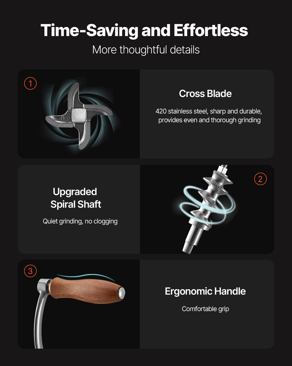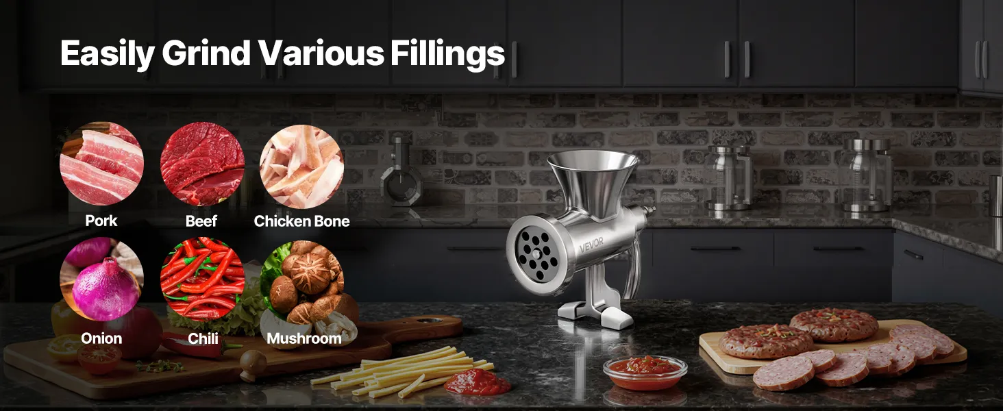 Neatkarīgi no tā, vai tā ir gaļa, dārzeņi vai garšvielas, šī izturīgā gaļas maļamā mašīna viegli tiek galā ar visu, ļaujot jums attīstīt kulināro radošumu un pagatavot dažādus gardus ēdienus.
