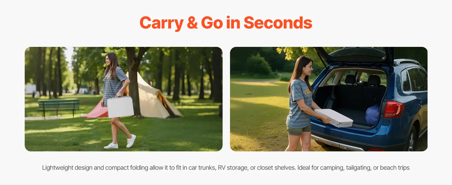 Plašs pielietojums: Piemērots gan āra, gan iekštelpu lietošanai — kā dārza, klēpjdatora, pusdienu, piknika, pludmales vai grila galds. Lieliski piemērots ceļošanai un atpūtai brīvā dabā.