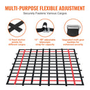 Blīvs siets ar redzamu sarkanu dizainu: VEVOR smagsvara kravas tīklam ir plata un plakana sieta konstrukcija, kas novērš sapīšanos un mezglu veidošanos. Papildus tīkls aprīkots ar 4 sarkanām siksnām, kas kalpo kā brīdinājuma zīmes aizmugurē braucošajiem transportlīdzekļiem.