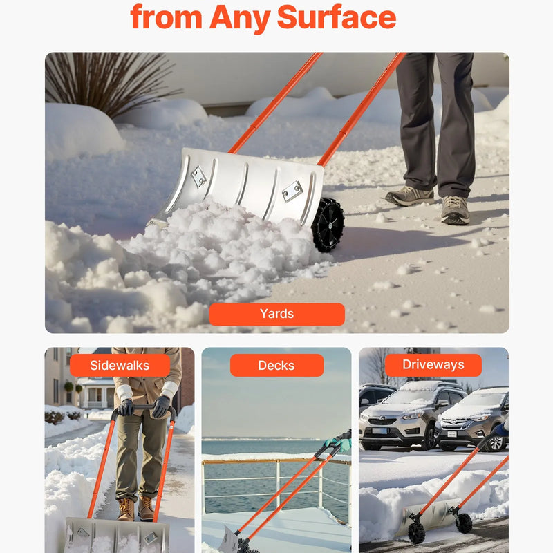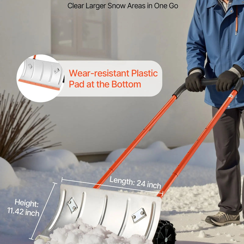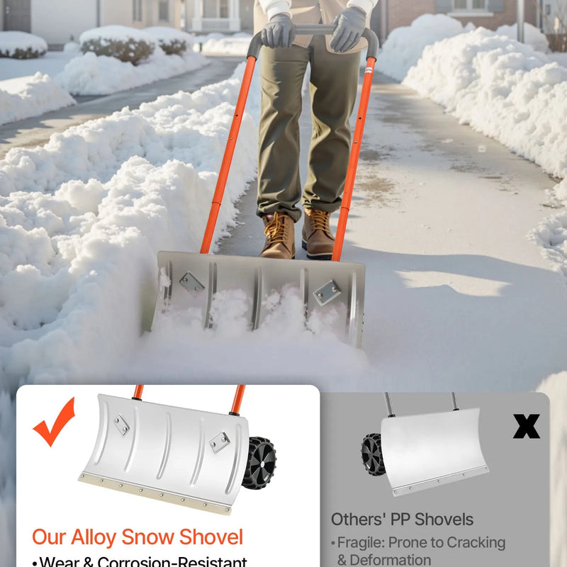 Paplašināts lāpstas asmens: ar 61 cm platu un 29 cm augstu asmeni šī sniega lāpsta ar riteņiem notīra lielas platības vienā gājienā. Aprīkota ar klusu, nodilumizturīgu plastmasas uzliku apakšā, tā aizsargā virsmas un samazina troksni, padarot sniega tīrīšanu vieglāku un klusāku.
