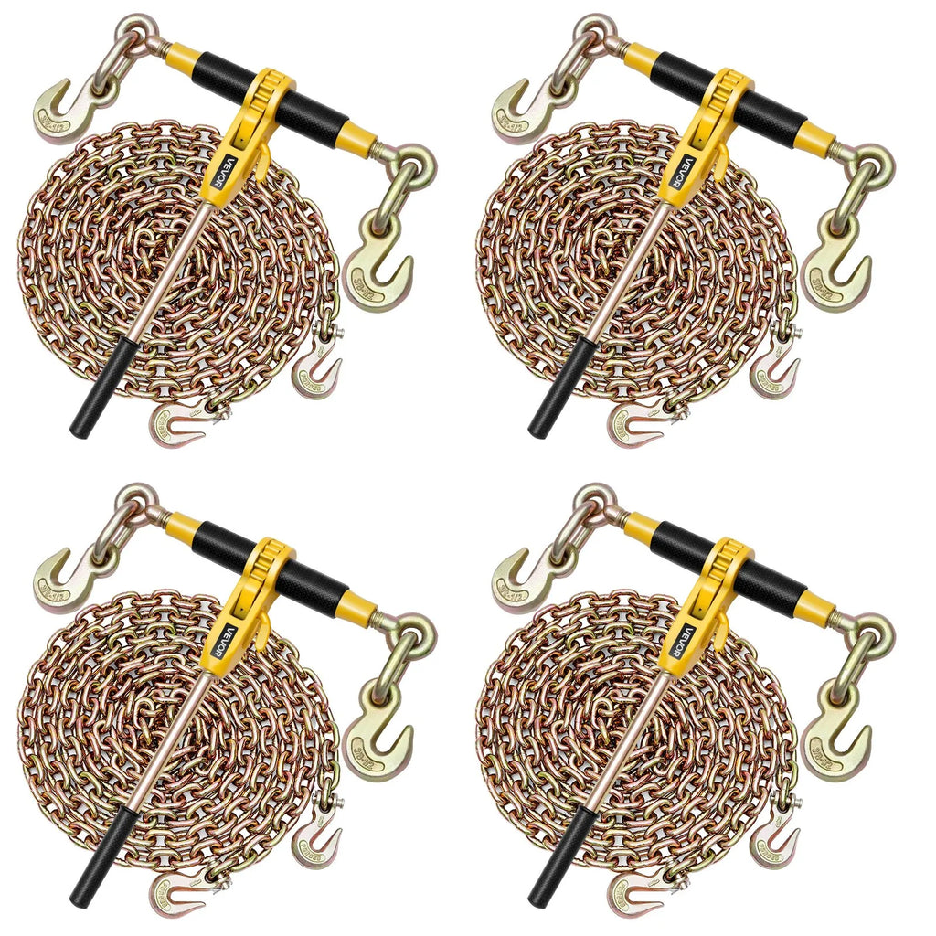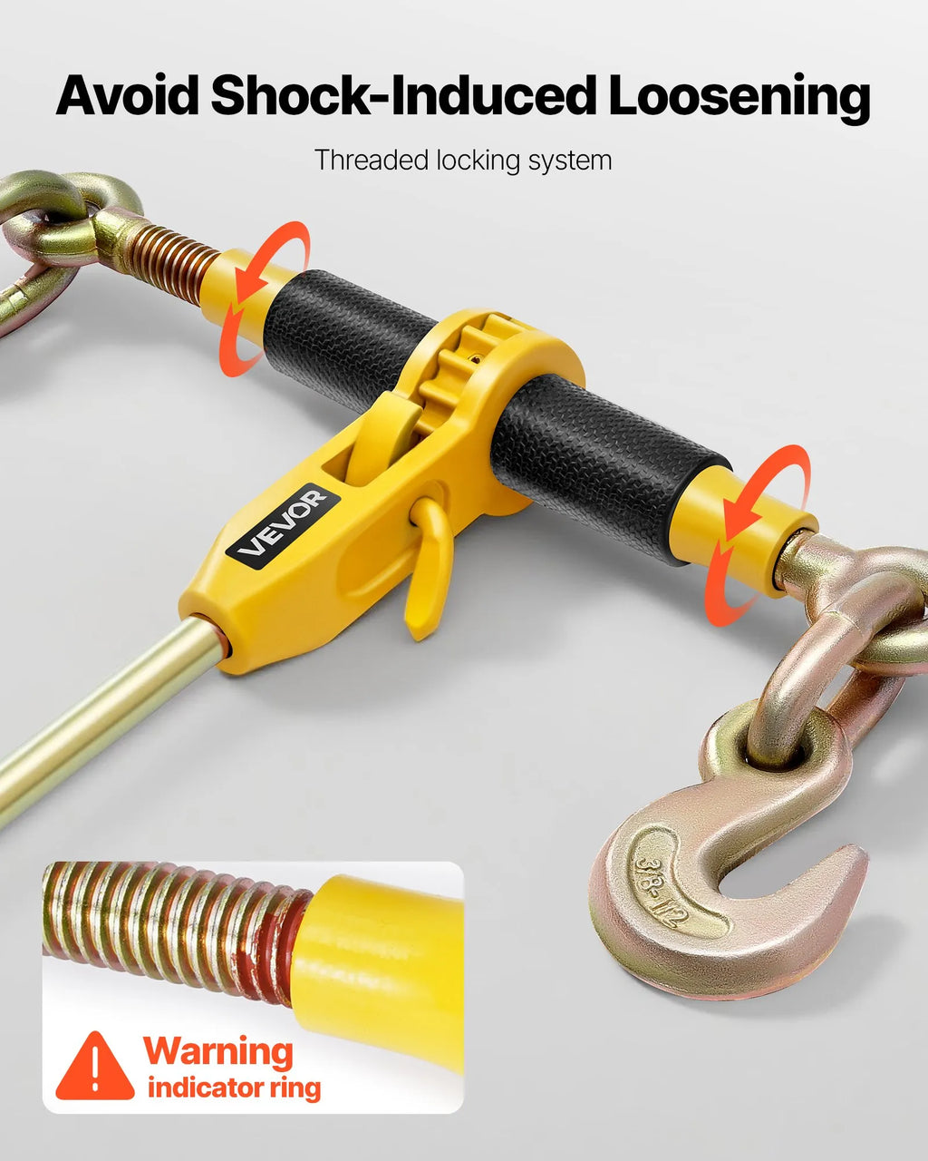 Sprūdrata ķēdes savilcējs, 10 mm × 6,1 m G80 ķēdes, 4173 kg darba slodze, ķēžu un savilcēju komplekts kravu nostiprināšanai, vilkšanai, kokmateriālu pārvietošanai un celšanai