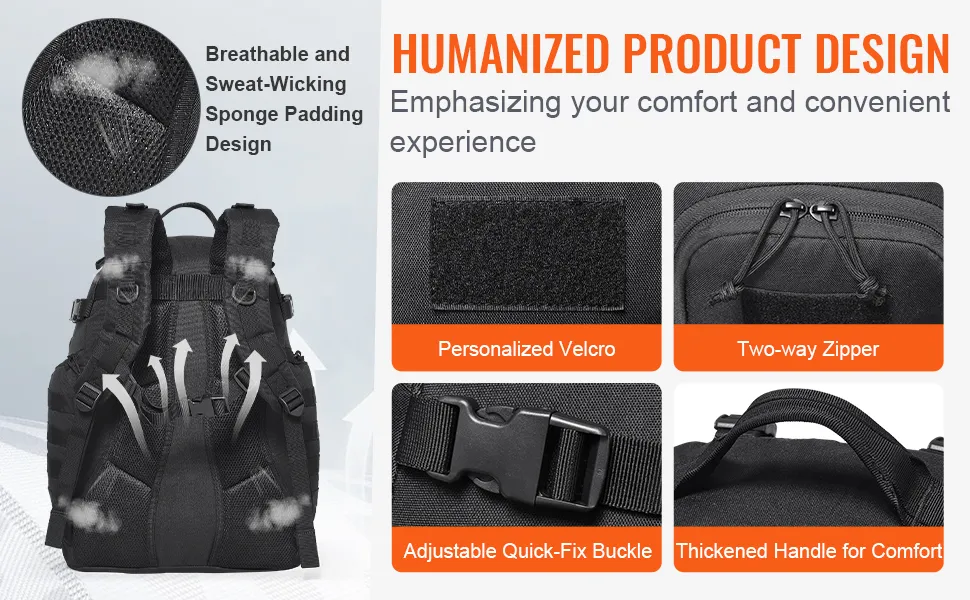 Mugursoma aprīkota ar lāzergrieztu MOLLE sistēmu, kas ļauj pievienot papildu aprīkojumu, kā arī ar daudzfunkcionālu kabatu dizainu ērtai piederumu glabāšanai. Tajā var ērti atdalīt un ievietot piezīmjdatoru, tālruni, planšeti un citus ikdienas priekšmetus.