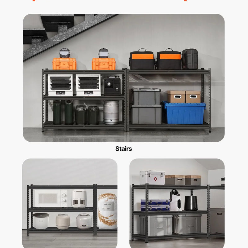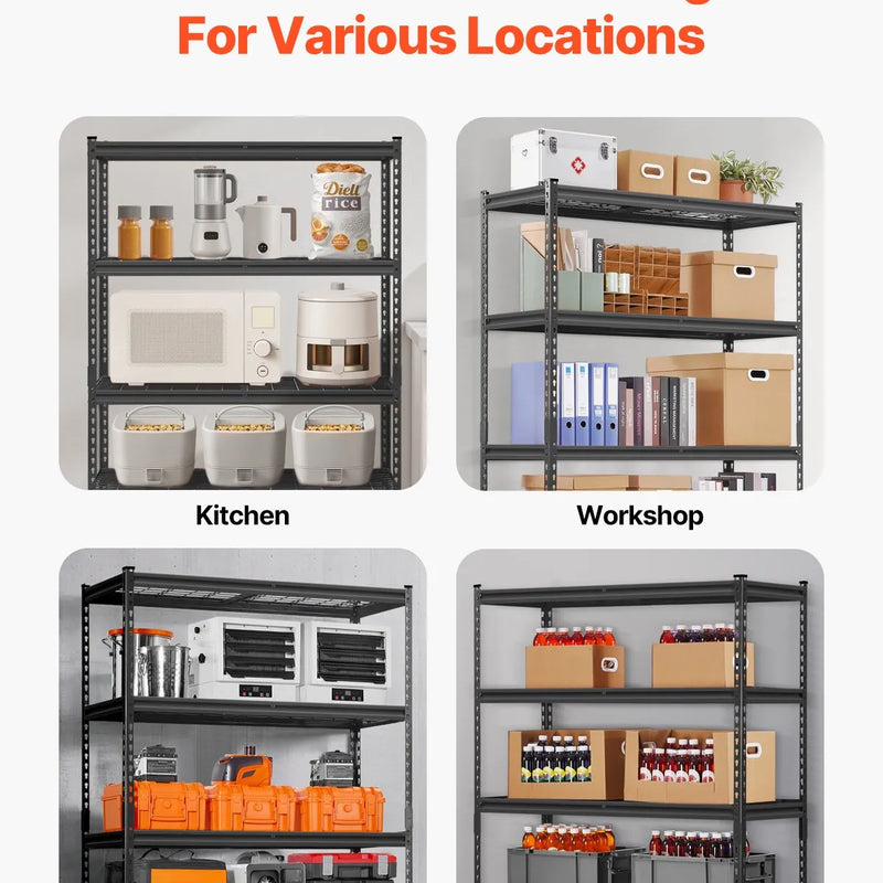 Daudzpusīgs pielietojums: Ideāli piemēroti virtuvēm, garāžām, darbnīcām, lielveikaliem un citām telpām, šie plaukti palīdz uzturēt kārtību un organizēt uzglabāšanu.