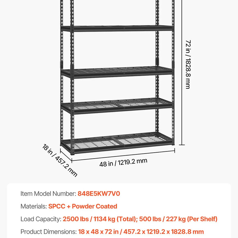 Nestspēja 1134 kg: Ar maksimālo kopējo nestspēju 1134 kg un 227 kg uz plaukta mūsu garāžas plauktu sistēma ļauj uzglabāt vairāk priekšmetu un instrumentu garāžā vai noliktavā.