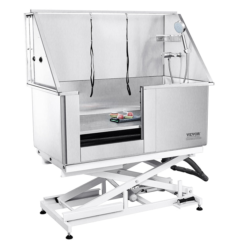 Elektriski regulējama mājdzīvnieku vanna ar bezšuvju metinājumu novērš ūdens noplūdes risku. Дроша, прецлидес вирсма балстас уз 1,8 мм биезу оглекля терауда рами ар нестспею лидз 150 кг. Nodrošina ērtu un drošu kopšanu. Piemērota gan profesionāliem kopējiem, gan mājdzīvnieku īpašniekiem.