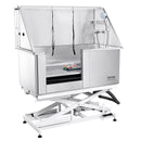 Viegli pielāgojiet ideālo darba augstumu ar kājas pedāli. Vannas grīdas augstums regulējams 560 mm diapazonā. Samazina nepieciešamību liekties, padarot darbu ērtu gan ar mazām šķirnēm, piemēram, Jorkšīras terjeriem, gan ar lielām - zelta retrīveriem.
