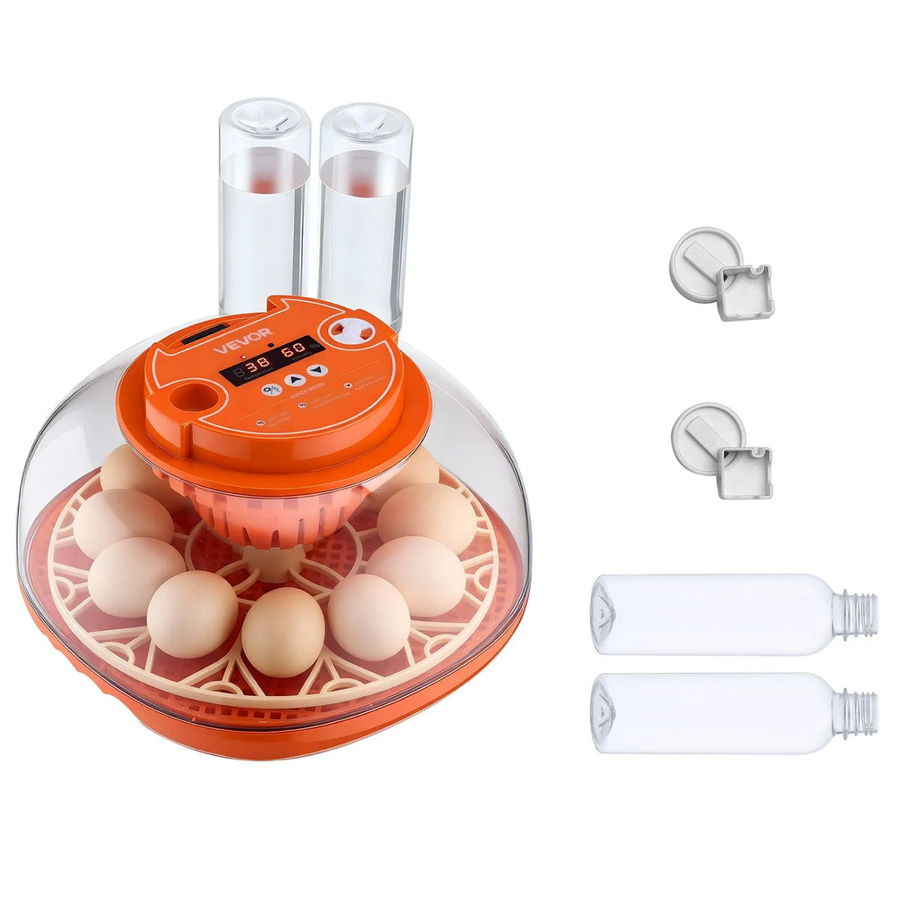 VEVOR 12 olu inkubators ar automātisku olu grozītāju, LED ovoskopu, temperatūras un mitruma kontroli, caurspīdīgu 360° skata logu putnu olu inkubēšanai mājai un saimniecībai (cāļi, pīles, zosis, paipalas)