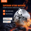VEVOR 3-jaw lathe chuck made of high strength ht300 material, 20cr steel chuck, and 40cr steel scroll.