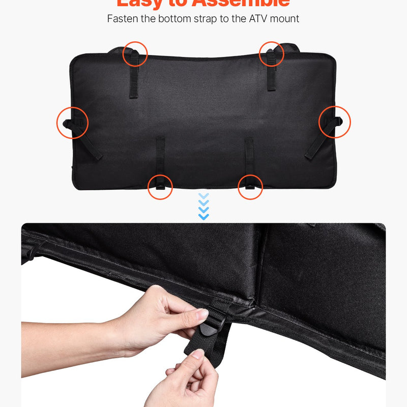Soma piestiprināma pie ATV aizmugures bagāžnieka ar komplektā iekļautajām apakšējām siksnām - nav nepieciešami papildu instrumenti vai urbšana. Savietojama ar ATV, UTV un Can-Am transportlīdzekļiem, nodrošinot ērtu un uzticamu lietošanu āra aktivitātēs.