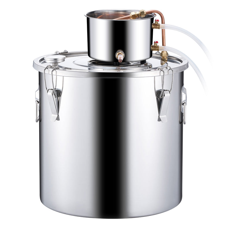 Piedāvājam pilnu komplektu šim destilatoram, kas ietver fermentācijas tvertni, tvertnes vāku un dzesēšanas katlu. Komplekts ir izgatavots no pārtikas klases materiāliem, tostarp nerūsējošā tērauda, silikona un vara, nodrošinot tiešu kontaktu ar izejvielām.