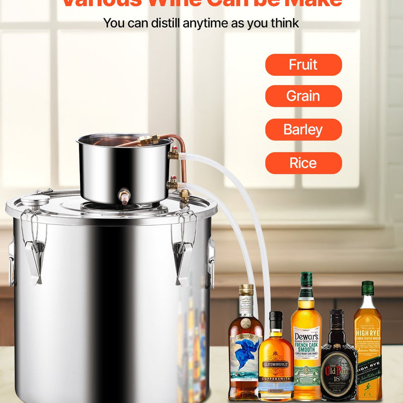 Šī destilācijas iekārta ir ideāli piemērota iesācējiem, kas vēlas ražot augļu vīnu, rumu, degvīnu, destilētu ūdeni un citus destilētus produktus mājās.