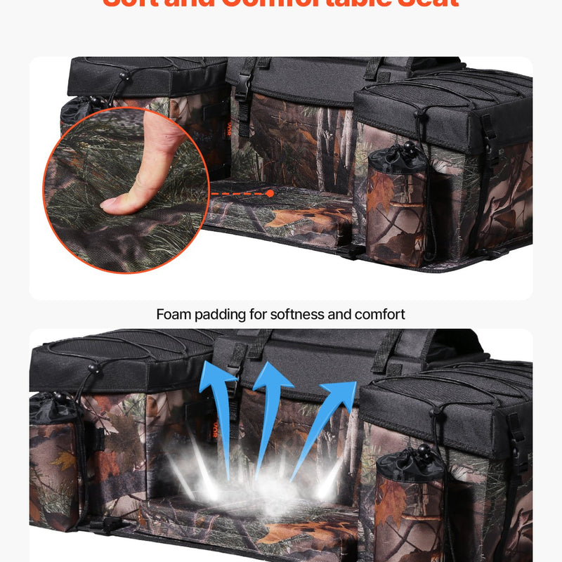 VEVOR ATV soma ar 68 L ietilpību apvieno uzglabāšanas un sēdvietas funkcijas vienā dizainā, nodrošinot pietiekami daudz vietas ķiverēm, cimdiem, instrumentiem un citiem piederumiem. Sūkļa polsterējums sēdeklī garantē augstu komfortu garos braucienos, padarot to ideāli piemērotu piedzīvojumiem brīvā dabā.