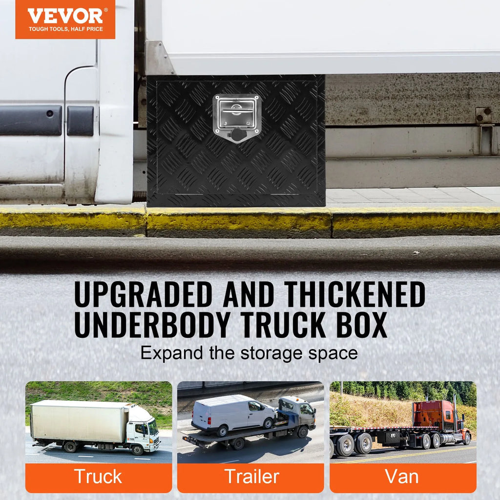 Vai jūsu mantas ir sakārtotas un viegli pieejamas? VEVOR apakšējā instrumentu kaste paplašina kravas automašīnas, piekabes vai cita lielā transportlīdzekļa uzglabāšanas vietu. Šajā kastē var glabāt visu nepieciešamo — no remonta instrumentiem līdz kempinga aprīkojumam — un uzturēt kārtību.