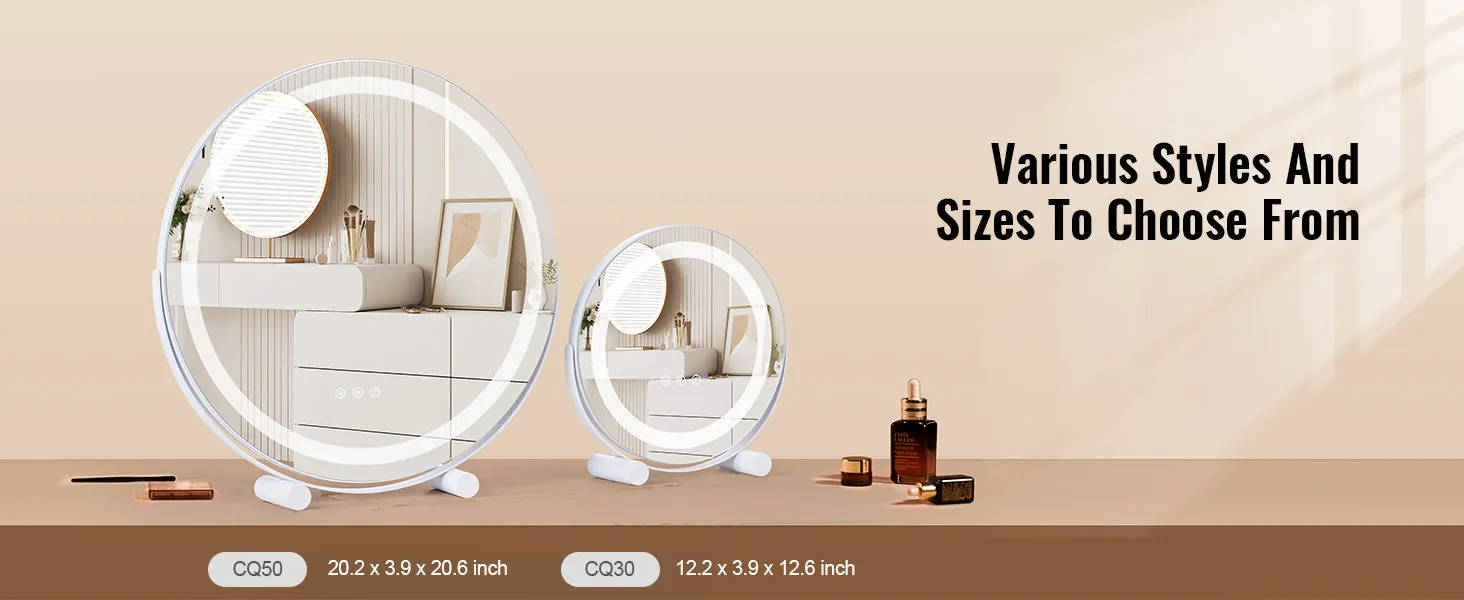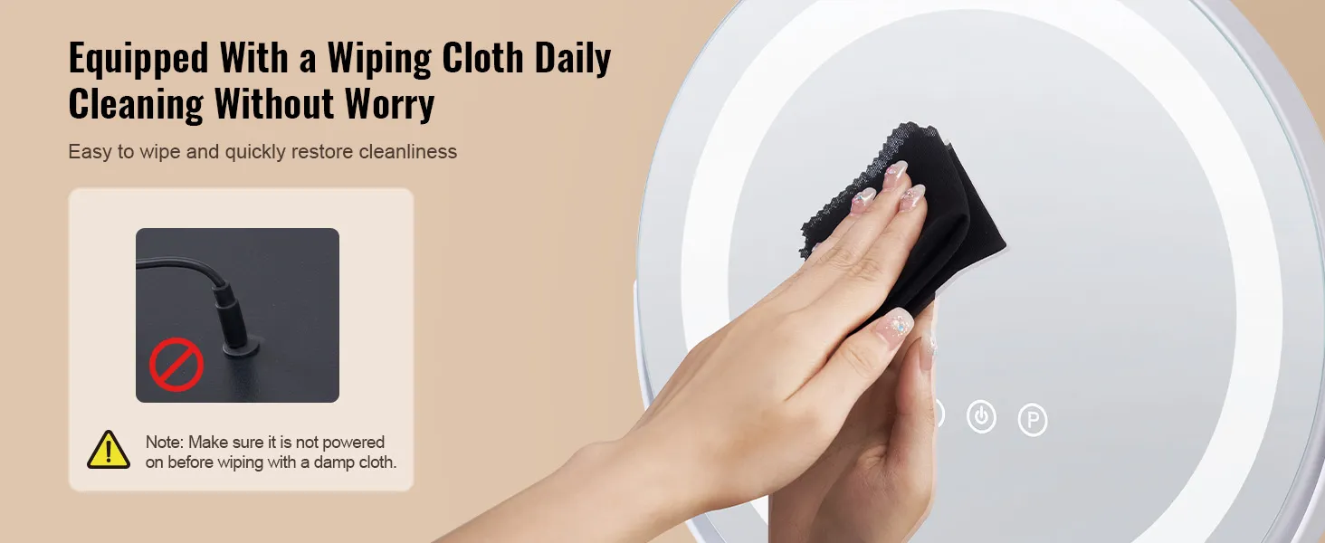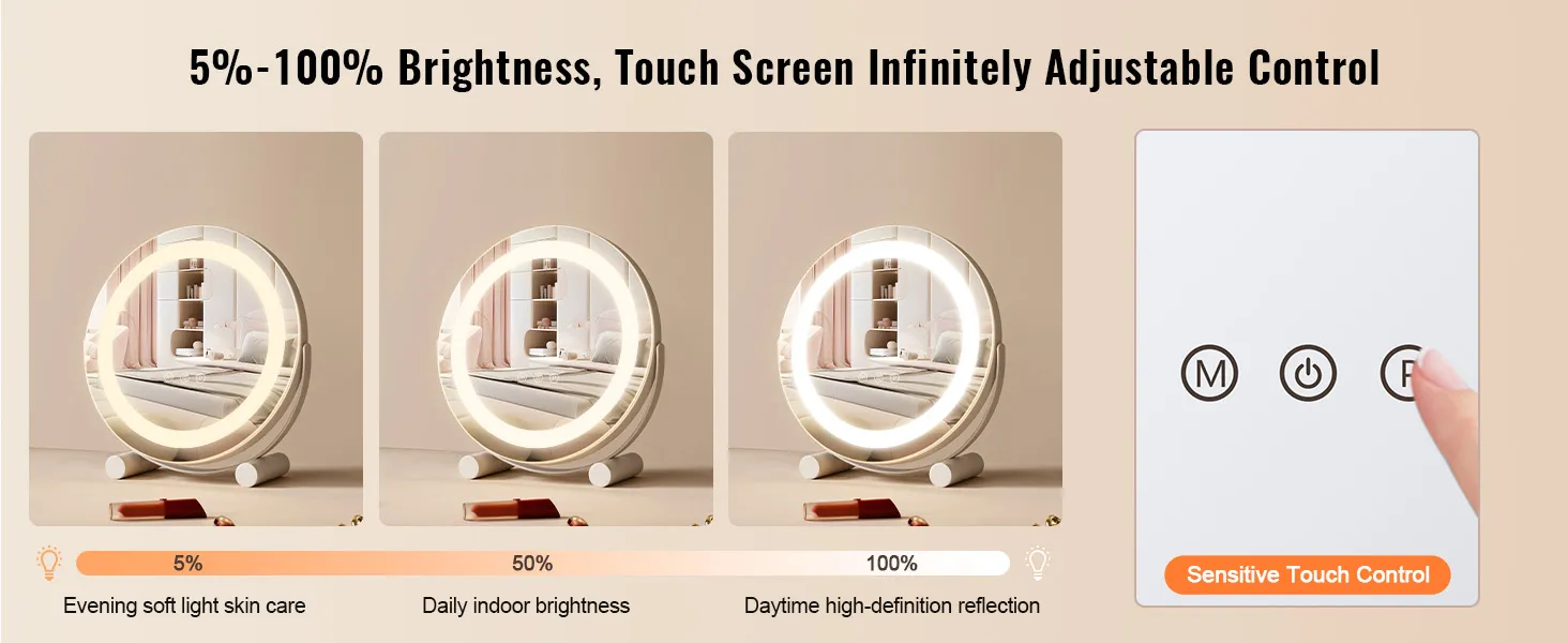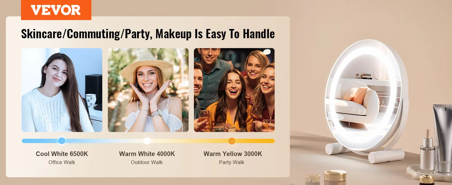 VEVOR apaļš LED grima spogulis ar apgaismojumu, 30 cm spogulis ar 3 gaismas režīmiem, 5× palielinājumu, skārienvadību un 360° rotāciju tualetes galdam (balts)