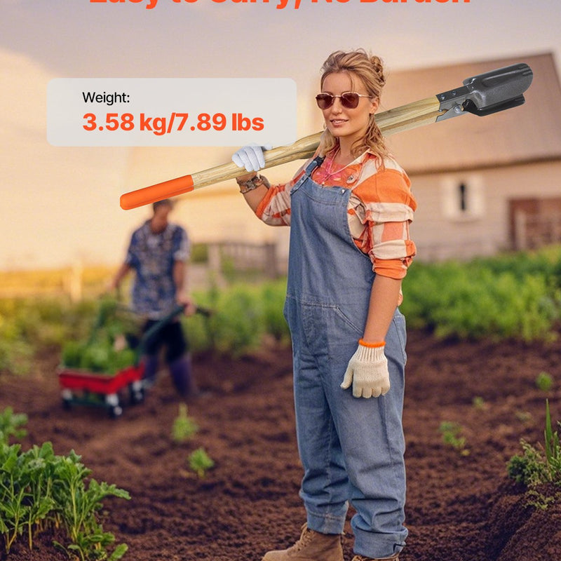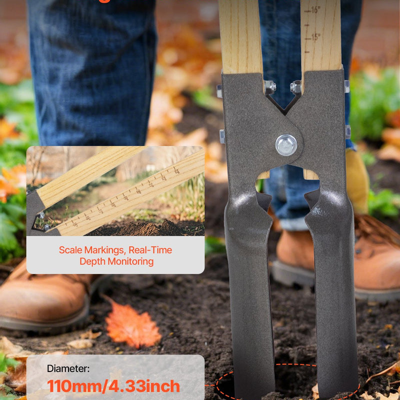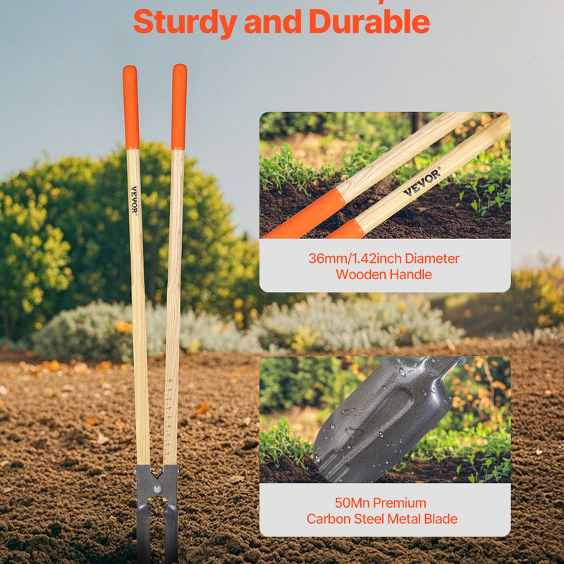Izturīgs un stingrs: Mūsu caurumu rakšanas instrumenta rokturis ir izgatavots no augstas kvalitātes koka, kura diametrs ir 36 mm, un ir aprīkots ar 50Mn tērauda asmeni. Tas ir piemērots dažādiem augsnes veidiem, piemēram, vaļīgai mīkstai augsnei un apstrādājamām zemēm.