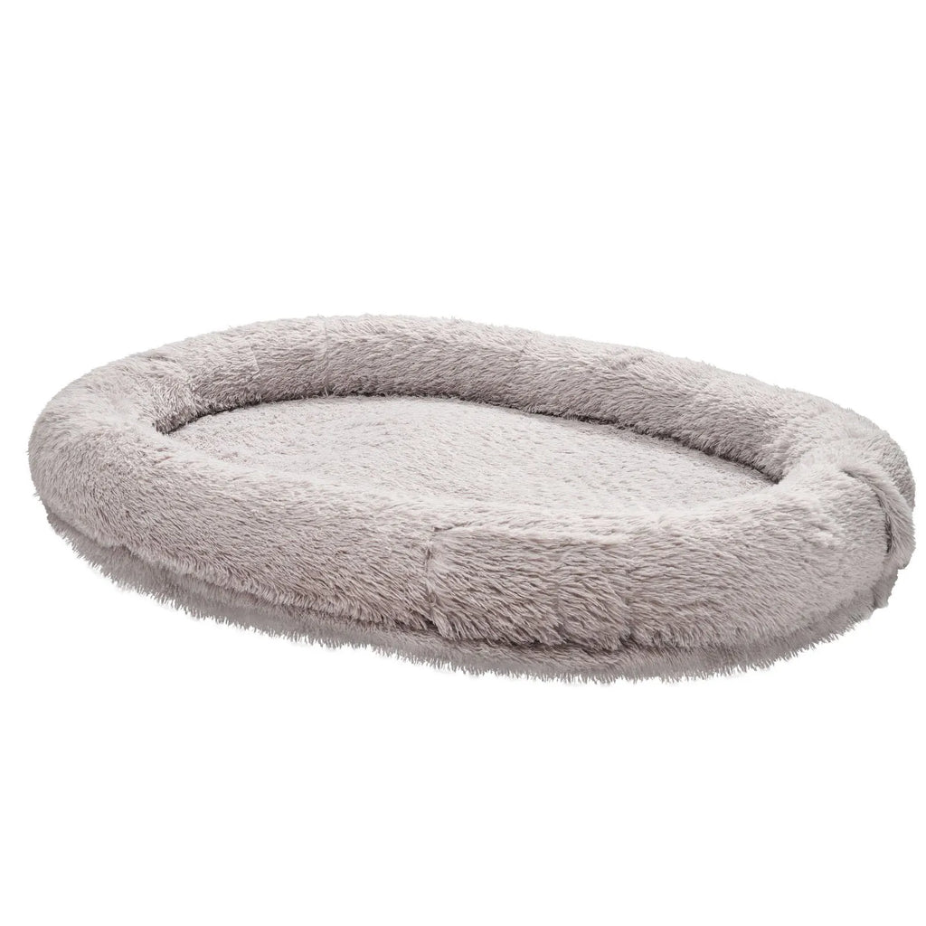 Mājīga koplietošanas telpa: 1760 × 1220 × 240 мм. Cilvēka izmēra mājdzīvnieku gulta pieaugušajiem ar ovālu, daļēji noslēgtu formu nodrošina ērtu vietu kopīgai atpūtai ar mājdzīvnieku. Piemērota snaudām, filmu skatīšanai un mierīgiem brīžiem tuvumā.