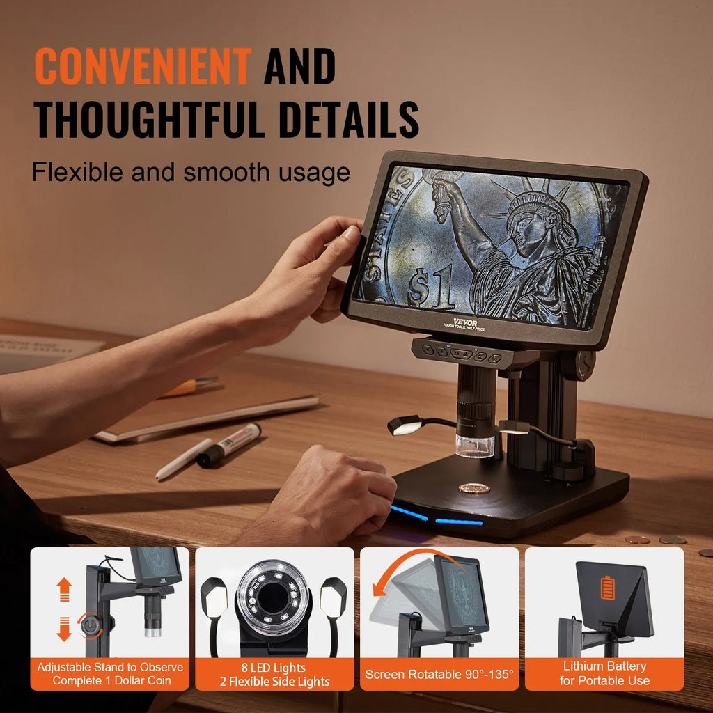 VEVOR HDMI LCD digitālais mikroskops ar 25,7 cm ekrānu un 10-1300× palielinājumu - daudzpusīgai novērošanai un analīzei