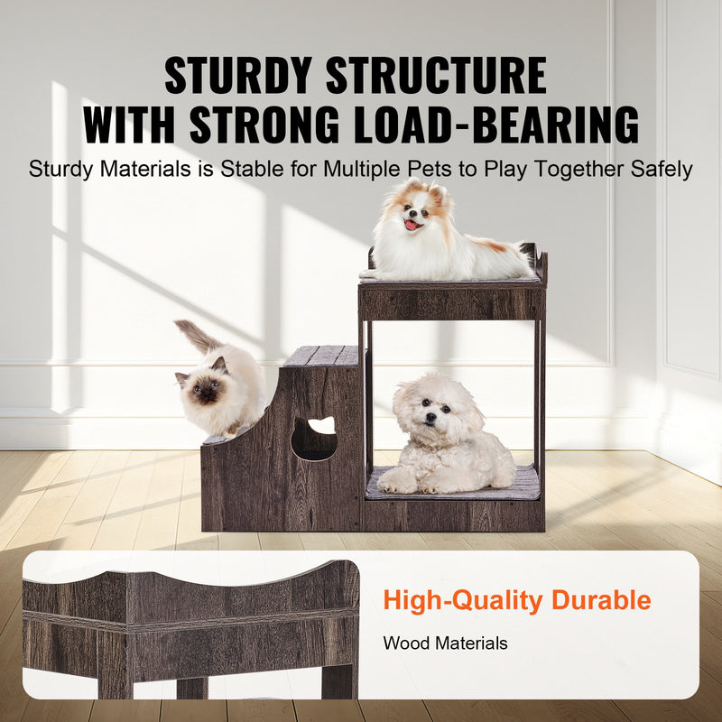 VEVOR divstāvu mājdzīvnieku gulta ar kāpnēm un glabātuvi - loga paliktnis suņiem/kaķiem, iekštelpām, pelēka