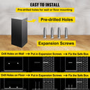 Seifam ir iepriekš urbti caurumi grīdai, sienai vai skapim. Darbojas ar četrām 1,5 V AA baterijām.