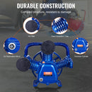 VEVOR 10 HP trīscilindru gaisa kompresora sūkņa galva nodrošina 17,5 CFM pie 6,2 bar (90 PSI) gaisa plūsmu, divpakāpju saspiešanu un maksimālo darba spiedienu 185 PSI (12,8 bar). Tā nodrošina nepārtrauktu un pietiekamu gaisa padevi plašam iekārtu klāstam - ideāli piemērota riepu piepumpēšanai, krāsošanai, kokapstrādei un citiem darbiem.
