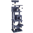 Tornis aprīkots ar 2 ietilpīgām kaķu mājiņām, augšējo novērošanas platformu un šūpuļtīklu, radot mierīgu un drošu atpūtas vidi. Mīkstās plīša virsmas ir saudzīgas ādai un nagiem, nodrošinot maksimālu komfortu. Vairākas platformas ļauj kaķiem izvēlēties sev piemērotāko atpūtas vai spēļu zonu.