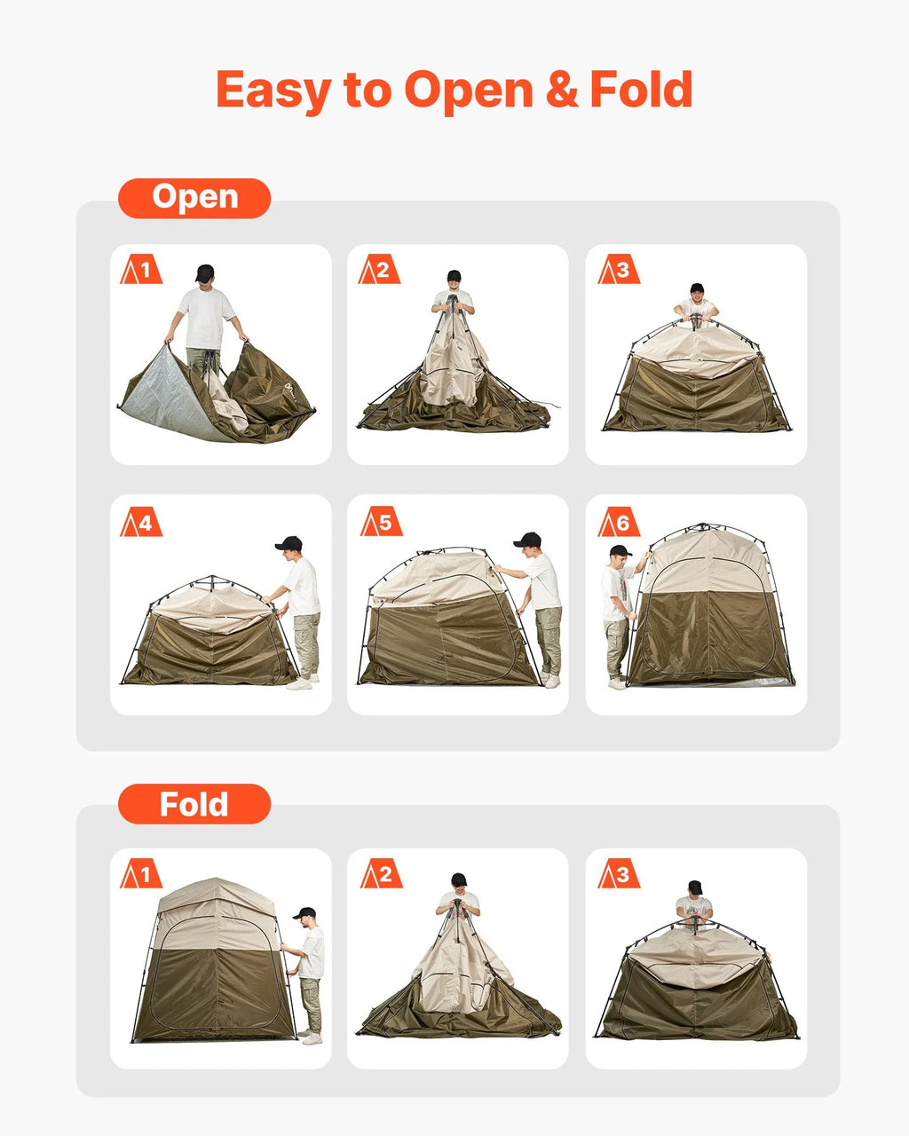 Viegla uzstādīšana un salocīšana: Ātrās salocīšanas konstrukcija ļauj dušas telti ātri salikt kompaktā izmērā ērtai uzglabāšanai. Uzstādīšana ir tikpat vienkārša — nav nepieciešamas īpašas prasmes, un pat iesācēji var to samontēt bez grūtībām.