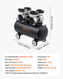 VEVOR kompakts un pārnēsājams bez eļļļas gaisa kompresors, 75 L, 6,2 bar (90 PSI)