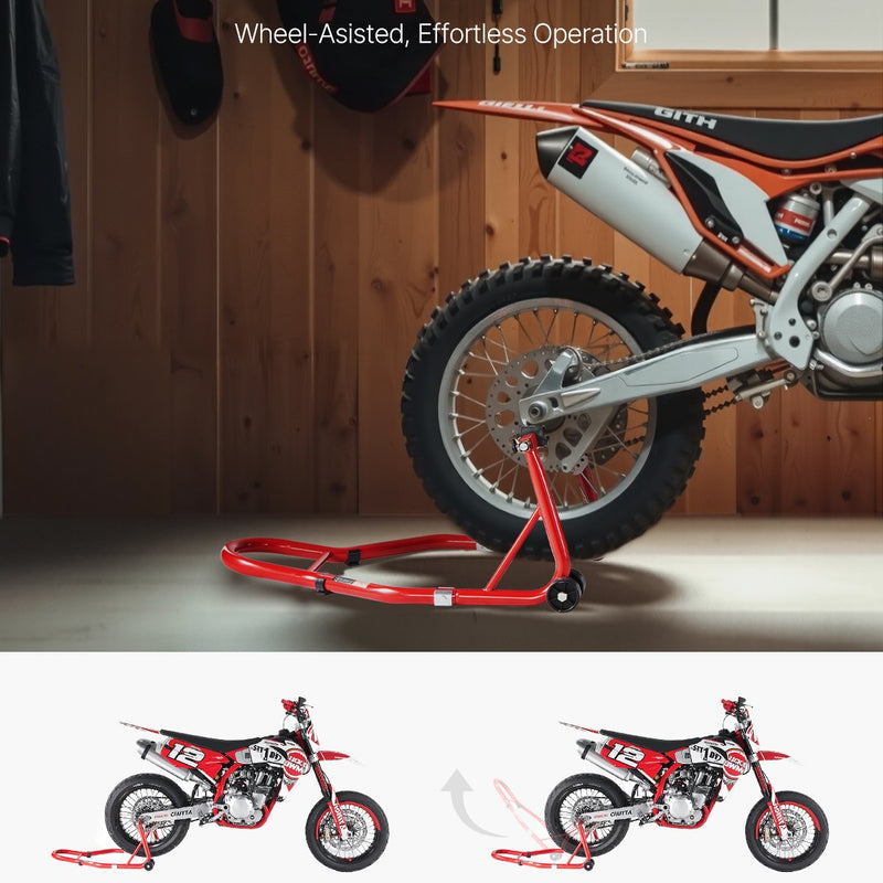 Mūsu motocikla apkopes statīvs ir izgatavots no profesionāla līmeņa pastiprināta tērauda, nodrošinot stabilu atbalstu lielākajai daļai motociklu. Izturīgs pret deformāciju un liekšanos, piemērots remontam mājas apstākļos, ilgstošai uzglabāšanai un ikdienas apkopei.