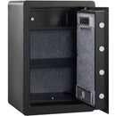 Mūsu seifs nodrošina maksimālu drošību ar trīskāršu slēgšanas sistēmu, kas ietver digitālo paroles tastatūru, pirkstu nospiedumu identifikāciju un divas ārkārtas atslēgas. Varat būt mierīgs - Jūsu mantas ir drošībā.