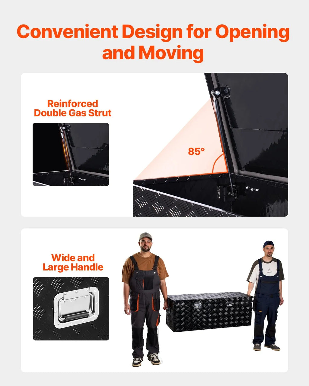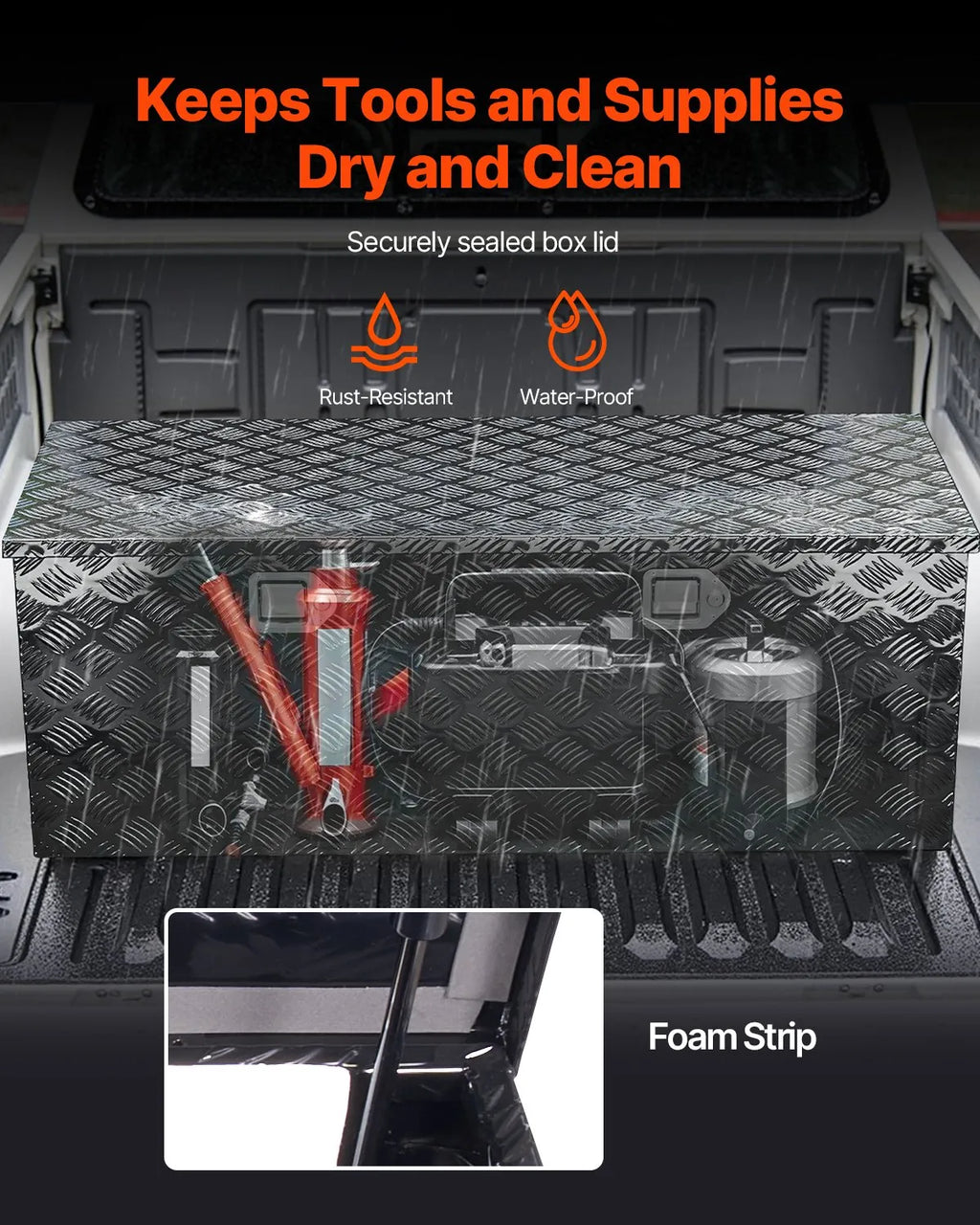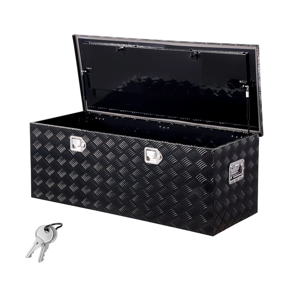 Liela uzglabāšanas ietilpība: Šī ietilpīgā kravas automašīnas instrumentu kaste, 1219,2 × 495,3 × 444,5 mm, nodrošina plašu vietu spaiņiem, remonta instrumentiem, ugunsdzēšamajiem aparātiem, brīdinājuma zīmēm, kā arī kempinga un makšķerēšanas aprīkojumam. Piemērota pikapiem, piekabēm, kemperiem, kā arī lietošanai mājās un noliktavās Izturīga alumīnija konstrukcija: Instrumentu kaste izgatavota no vieglas un izturīgas augstas kvalitātes alumīnija loksnes. Virsmas rievotais raksts un pulverkrāsojums nodrošina izcilu aizsardzību pret rūsu, izturot stipru lietu, sāls miglu piekrastes reģionos un ziemas sniega kušanas apstākļus. Iepakojumā stūri ir aizsargāti pret deformāciju transportēšanas laikā Ūdensizturīga un korozijizturīga: Alumīnija vāks ar ielocītām malām un iekšējo putu blīvi nodrošina ciešu noslēgumu, kas neļauj lietum un putekļiem iekļūt kastē. Instrumenti paliek sausi pat stiprā lietū vai putekļainos apstākļos Pretuzlaušanas dubultās slēdzenes: Alumīnija instrumentu kaste aprīkota ar divām iebūvētām slēdzenēm un četrām atslēgām. Slēdzeņu korpusi ir integrēti kastē, tādējādi tos ir grūti izlauzt vai sagriezt ar instrumentiem. Šāds dizains arī samazina skrāpējumu un triecienu risku pārvadāšanas laikā Ērta piekļuve un pārnēsāšana: Pastiprinātie dubultie gāzes balsti nodrošina vienmērīgu kastes atvēršanu un aizvēršanu, pasargājot pirkstus no iespiešanas. Paplašinātie sānu rokturi nodrošina lielāku satvēriena laukumu un ērtu pārnēsāšanu arī ar cimdiem