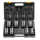 Bagātīgs saturs: Šis pilnais komplekts ietver 8 metriskās dziļās trieciensloksnes: 27 mm, 30 mm, 32 mm, 33 mm, 35 mm, 36 mm, 38 mm, 41 mm, piedāvājot daudzpusīgu izvēli dažādiem mehāniskiem darbiem.