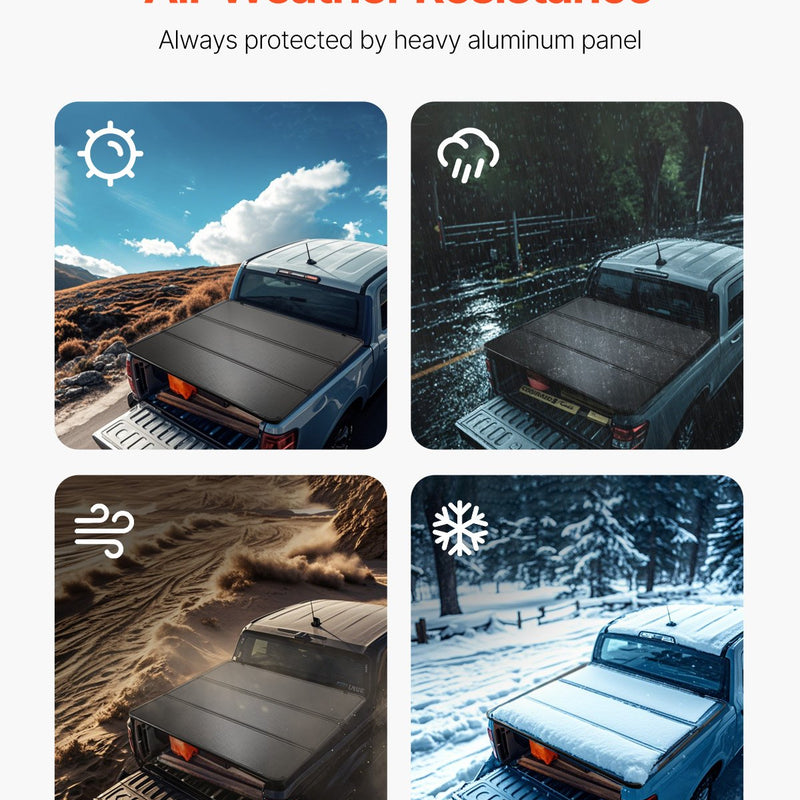 VEVOR trīsdaļīgais kravas kastes pārsegs ir īpaši izstrādāts Ford F-250 un F-350 Super Duty modeļiem (1999-2024). Šis dizains nodrošina pilnīgu atbilstību 6,75 pēdu Styleside kravas kastei. Pārsegs lieliski pieguļ kravas kastei ar izmēriem 2052 × 1646 mm vai 2037 × 1646 mm.