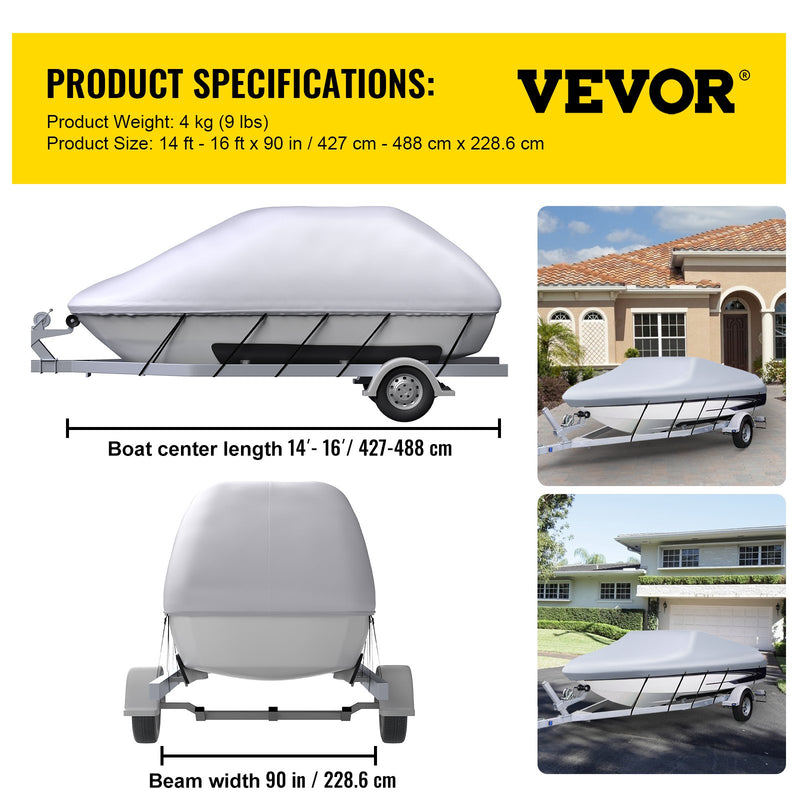 VEVOR ūdensnecaurlaidīgais laivas pārsegs iztur lietu, sniegu un krusu, nodrošinot, ka Jūsu laiva paliek ideālā stāvoklī neatkarīgi no ārējiem apstākļiem. Tas arī novērš pelējuma un sēnīšu veidošanos, samazinot nepieciešamību pēc biežas apkopes. Neatkarīgi no tā, vai līst stipri vai viegli - šis pārsegs nodrošina aizsardzību visu gadu.