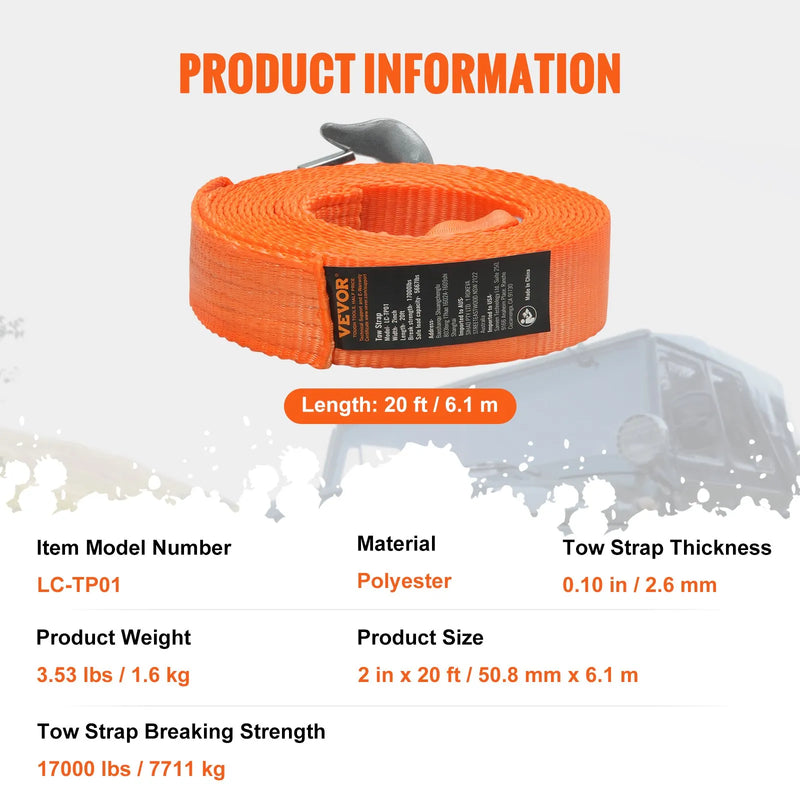 VEVOR automašīnas vilkšanas siksna izgatavota no augstas kvalitātes poliestera ar uzlabotu UV aizsardzību un noturību pret laikapstākļiem. Tas nodrošina ilgstošu izturību pat skarbos āra apstākļos un padara to par vērtīgu papildinājumu jebkuram atgūšanas aprīkojuma komplektam.