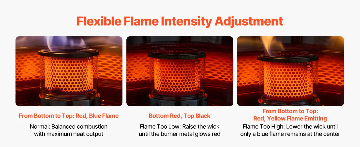 Vēro liesmu, lai pielāgotu optimālo sildīšanas līmeni dažādiem laikapstākļiem — šis petrolejas sildītājs viegli pielāgojas jūsu apkures vajadzībām visa gada garumā.