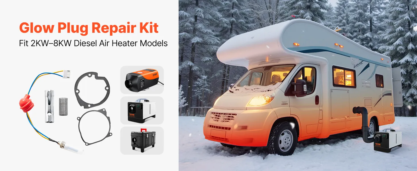Uzticama rezerves daļa: dīzeļa gaisa sildītāja sveces servisa komplekts ir universāla rezerves daļa, kas piemērota lielākajai daļai dīzeļa sildītāju - 2 kW, 5 kW un 8 kW modeļiem. Tas nodrošina stabilu darbību, vienkāršu uzstādīšanu un ilgtermiņa uzticamību jūsu transportlīdzeklim vai aprīkojumam.