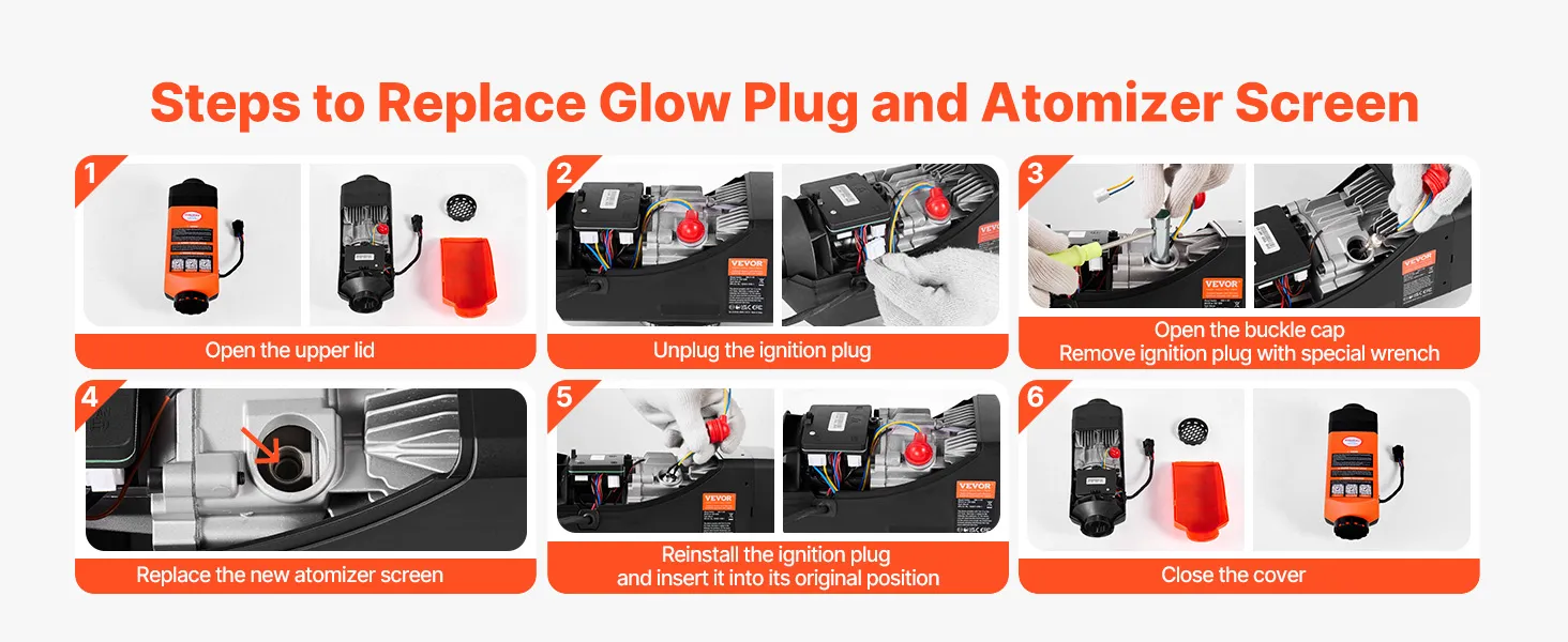 Vienkārša uzstādīšana: mūsu dīzeļa sildītāja piederumi ir aprīkoti ar speciāliem instrumentiem kvēlsveču noņemšanai un uzstādīšanai. Konstrukcija atvieglo apkopi, ļaujot ātri nomainīt detaļas, ievērojot instrukciju, un nodrošina vienmērīgu un efektīvu sildītāja darbību.