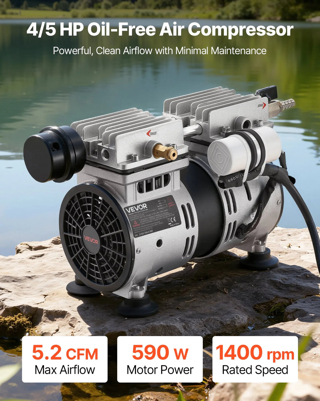 VEVOR dīķa aerators, 5,2 CFM gaisa kompresors ar 4/5 ZS jaudu, dīķiem un ezeriem līdz 3 akriem, aizsardzība pret pārkaršanu un pretatplūdes vārsts, 590 W jaudīgs motors, dīķa aerācijas sūknis ūdens skābekļa cirkulācijai