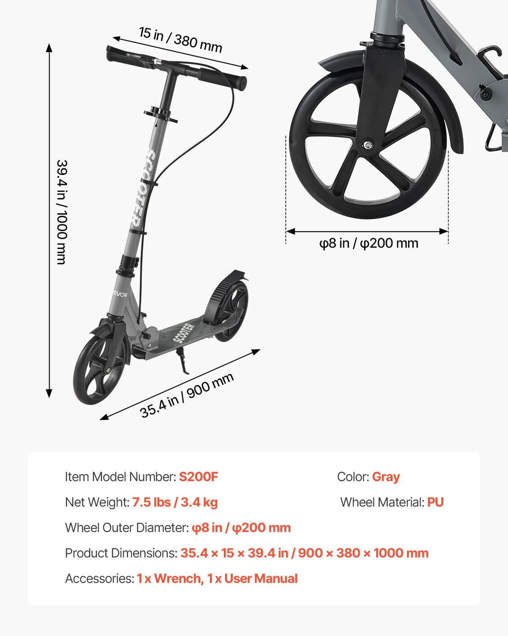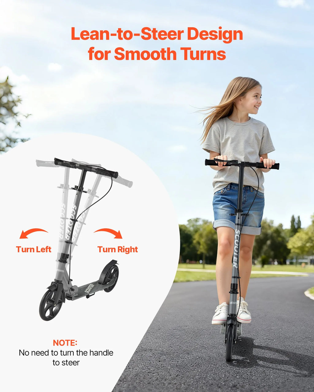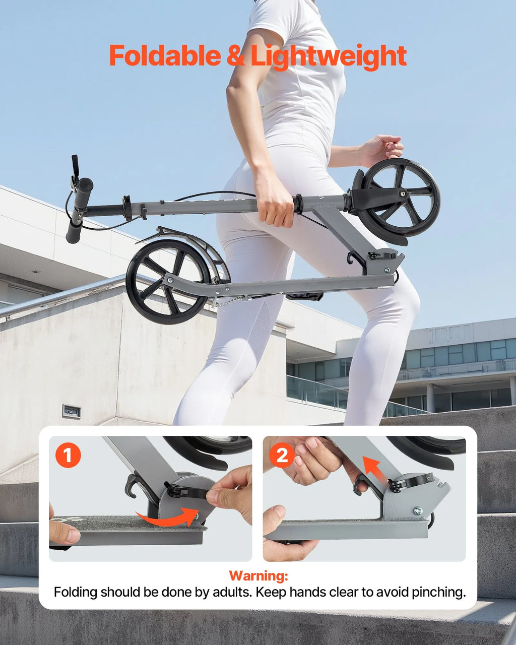 【Droša braukšana un salokāms dizains】– Plata pretslīdes platforma nodrošina stabilitāti, bet rokas bremze ļauj viegli un kontrolēti apstāties. Skrejritenis ātri salokāms un ir viegli pārnēsājams vai uzglabājams automašīnas bagāžniekā.