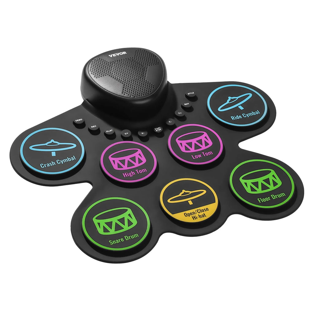 VEVOR elektriskā bungas sistēma, 7 spilventiņi, salokāms treniņu bungu paklājiņš, elektroniskā bungas sistēma ar austiņām