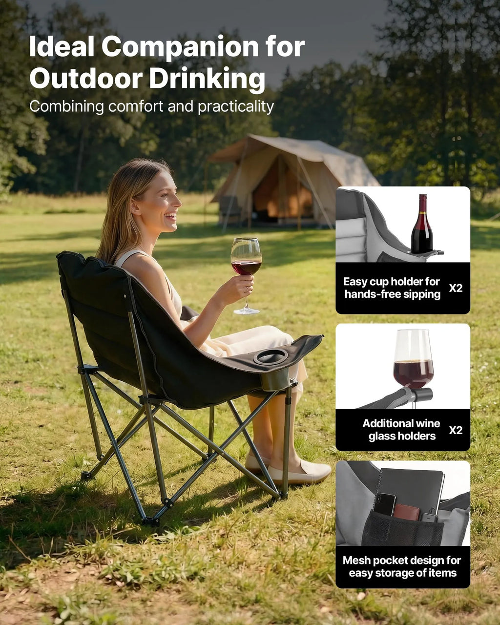 204 kg izturīga slodze Šie saliekamie kempinga krēsli nodrošina stabilu atbalstu līdz 204 kg. Pastiprinātais tērauda rāmis, sabiezinātas tērauda caurules un X-veida konstrukcija nodrošina stabilitāti, izturību pret rūsu un ilgstošu kalpošanu.