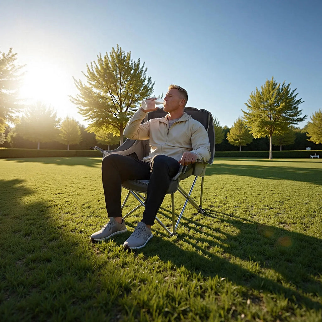 Ērta sēdēšana Saliekamajam kempinga krēslam ir mīksti polsterēta kokvilnas atzveltne. Sēdvietas izmēri: atzveltnes augstums 540 mm, sēdvietas dziļums 540 mm, sēdvietas platums 480 mm. Augstā atzveltne balsta muguras lejasdaļu un pielāgojas ķermeņa dabiskajām formām.